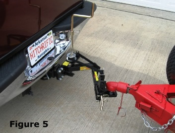 7. Lower trailer coupler with trailer jack onto the ball and lock back in place. See Figure 5.